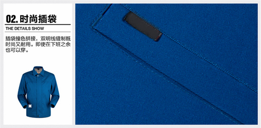 JL-QD217東莞廠服以寶藍(lán)色純色為主色,領(lǐng)口采用立體式翻領(lǐng),外側(cè)插兜線條感十足,甄選高品質(zhì)面料,讓您穿著舒服,時(shí)尚