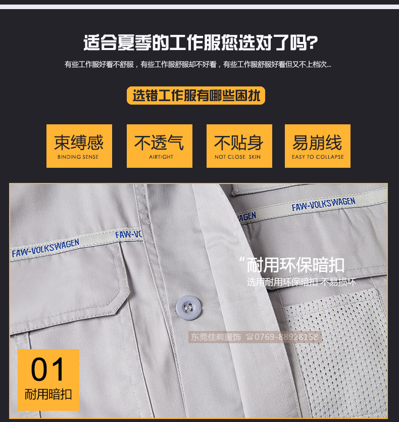 • 一汽大眾短袖工作服 夏季汽修工作服 JL-QX009