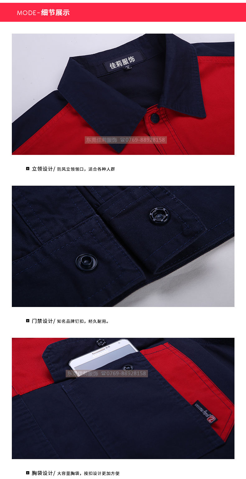 高品質全新形象,經典設計,立體裁剪,時尚翻領,質感有型。走線細致,優質暗扣,實用性強。胸前口袋撞色拼接,雙明線縫制既時尚又耐用,即使在下班之余也可以穿。